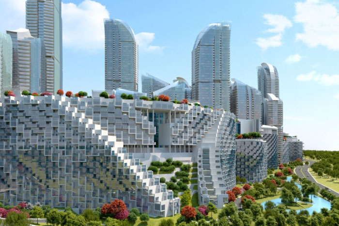 Im Projekt Ağaoğlu Maslak 1453 wurde eine Aluminium-Elementfassade mit perforierten Aluminiumgeländern bevorzugt.