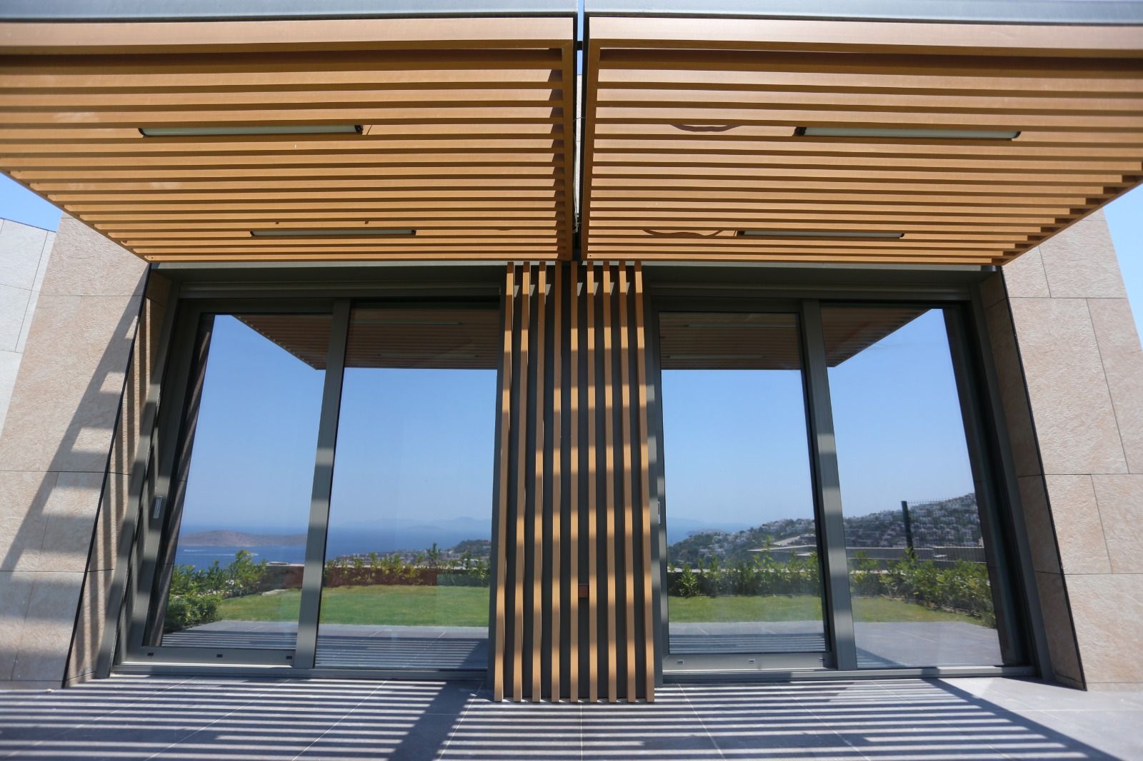Das interne Vorhangfassadensystem MN50, das Schiebesystem S50 und das Tür- und Fenstersystem ST60 wurden von der Firma Taşçılar Alüminyum in Bodrum im Projekt By Ekşioğlu Yalıkavak eingesetzt.