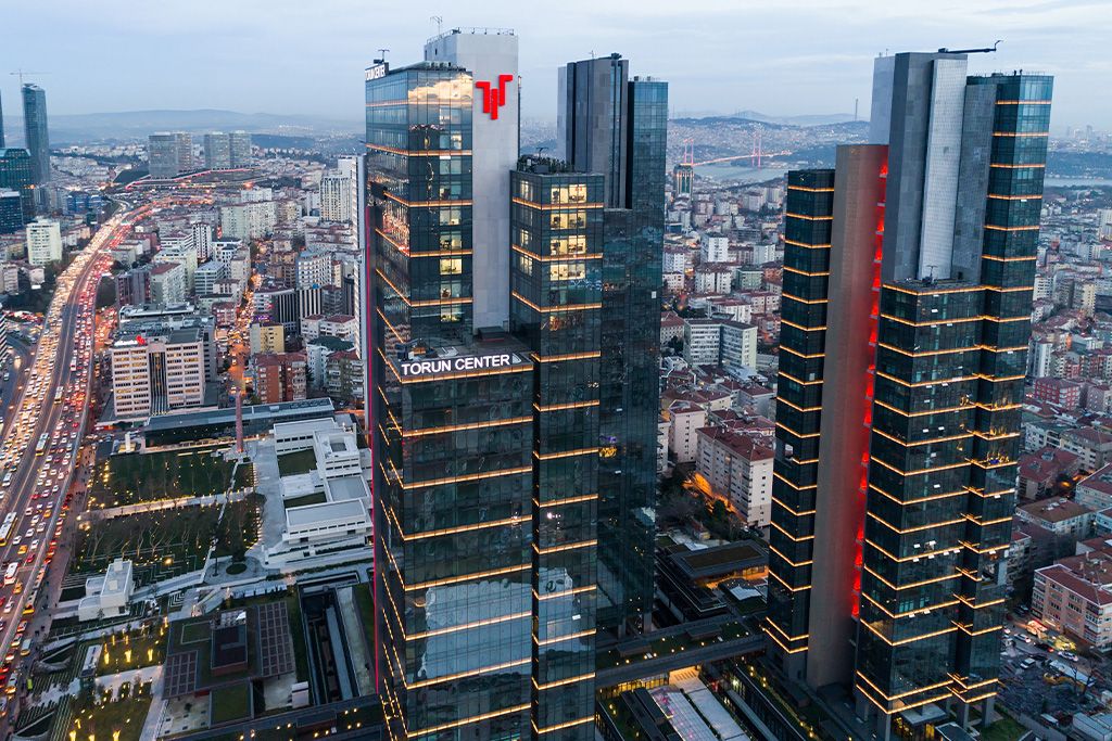 Leistungsumfang: Im Torun-Center-Projekt, das für eine gemischte Nutzung konzipiert und mit Funktionen ausgestattet ist, die allen Anforderungen des modernen Lebens gerecht werden, wurden die Aluminium-Stab-System-Vorhangfassade und die Aluminium-Paneel-Elementfassade bevorzugt.